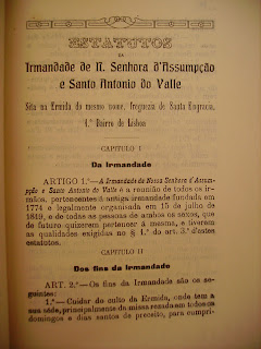 A próxima peça que aqui apresento é uma interessante publicação de 1913 dos Estatutos por onde se regia a antiga Irmandade de Nª Srª da Assunção e de Stº António do Vale.